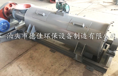 粉塵加濕機由均勻供料、葉片輸料、混合擊打加濕,振動系統等四部分組成,并配以電控和供水系統。粉塵加濕機整體固定在底座上,筒體由四組彈性元件支撐,通過激振裝置,施以震動,使整機在運轉過程中,筒體作高頻振動,使筒壁與攪拌軸之間始終保持的間隙,使整機運轉阻力大幅度減小,減少了悶機,堵轉現象,減小停機清理時間,提高了工作效率。供水由閥門組進行控制。為穩定本系統供水及清潔水質,管路中設置了過濾器,并由主控柜對加濕機各部分進行聯鎖控制,以達到控制供水恒濕運行的目的。