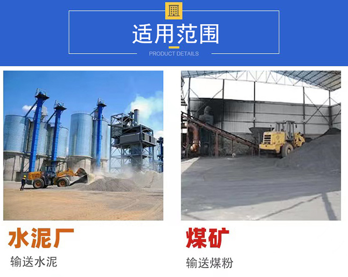 1、廣泛適用于容重≤1.2t/m3,溫度小于100℃,含水率一般以手捏成團撒手后仍能松散粘性小的粉狀、小顆粒和小塊狀物料,如:碎煤、灰、糧食、水泥、化肥等物料。