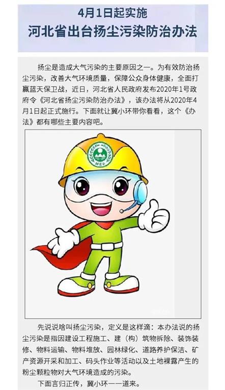 障公眾身體健康,全面打贏藍(lán)天保衛(wèi)戰(zhàn),近日,河北省人民政府發(fā)布2020年1號政府令《河北省揚(yáng)塵污染防治辦法》,該辦法將從2020年4月1日起正式施行。