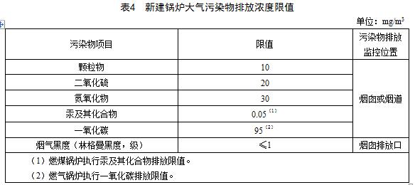 4.4 新建鍋爐執行表4中的大氣污染物排放限值。