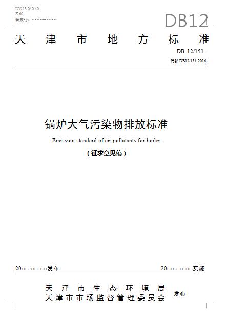 天津:鍋爐大氣污染物排放標準(征求意見稿)