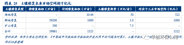 場地與耕地領銜,潛在市場空間巨大。此前我們根據南京大學生態研究院對省會城市污染地塊的統計,測算出僅工業場地修復未來空間_達522億元;耕地方面,根據“土十條”中“到2020年,輕度和中度污染耕地實現安全利用的面積達到4000萬畝”、“2020年受污染耕地治理與修復面積達到1000萬畝”等目標以及公開項目的修復均價,我們預計十三五期間耕地修復的理論空間約為1000億元;而礦山修復受經濟效益較小等因素掣肘,預計相應市場將在遠期釋放。考慮到污染土壤排查工作在2017年基本完成,因此保守預計2019-2020年土壤修復的市場空間分別約為1522億元。