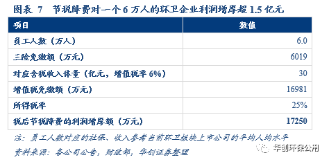 同時階段性降費政策控制成本,助增盈利與現金流。今年繼續執行下調增值稅稅率和企業養老保險費率等制度,新增減稅降費約5000億元。前期出臺6月前到期的減稅降費政策,執行期限全部延長到今年年底。假設一個6萬人員工的環衛企業2月起三項社會保險減半繳納,并以行業平均人效預測2020年全年含稅收入30億元,則2020年全年社保減少額和增值稅免繳額分別望達5680萬元和1.6億元,明顯提振企業現金流與利潤水平。