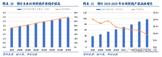 垃圾焚燒發電步入成熟階段,行業增長空間仍大。近年來伴隨著垃圾處理方式的優化,我國填埋處理為主的垃圾處理結構逐漸向焚燒為主轉變。根據《“十三五”_城鎮生活垃圾無害化處理設施建設規劃》,到2020年_城鎮生活垃圾焚燒處理設施能力占無害化處理總能力50%以上,對應產能達59.12萬噸/日。截至2018年底,我國已投入使用的垃圾焚燒產能為38萬噸/日,距離2020年規劃目標尚有20.8萬噸/日的缺口,若2025年我國垃圾焚燒率將達到發達_平均75%的水平,同時考慮到人均垃圾量的增長,預計2025年國內垃圾焚燒產能達98萬噸/日,2019-2025年行業整體將保持13.6%的高復合增長率。
