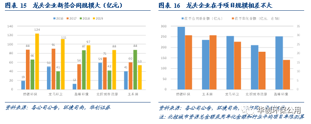 _企業新簽合同和現有合同規模大。2019年僑銀環保新簽項目總金額124億元在上市企業中居首,而上市公司的年化新增金額均在10億元水平左右;從在手訂單來看,玉禾田、僑銀環保和龍馬環衛在規模方面相對_,但_公司體量規模目前仍處于齊頭并進的狀態,2019年底在手合同總金額均_過200億元。