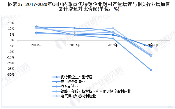 特鋼產(chǎn)業(yè)是我國(guó)制造業(yè)發(fā)展的重要產(chǎn)業(yè)基礎(chǔ)。數(shù)據(jù)顯示,我國(guó)重點(diǎn)優(yōu)特鋼企業(yè)鋼材產(chǎn)量增速與其關(guān)聯(lián)行業(yè)的變化密切相關(guān)。