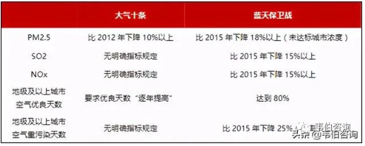 圖表 5:“藍天保衛(wèi)戰(zhàn)”與“大氣十條”主要指標對比