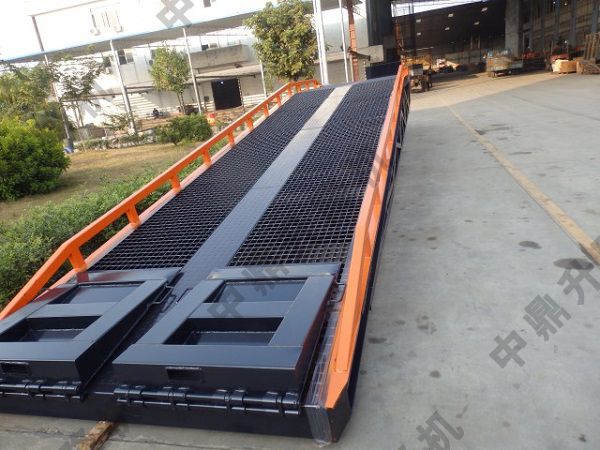 3、采用手搖液壓泵作動力,勿需外接動力電源即可輕松實現(xiàn)登車橋的高度調(diào)節(jié)。達到車廂的高度,方便叉車駛?cè)搿?br /> 4、配置的剎車墊可有效防止貨車裝卸時登車橋移位。移動式登車橋簡單介紹:是與叉車配合使用的貨物裝卸輔助設(shè)備,可根據(jù)汽車車廂的高低調(diào)節(jié)高度,叉車可以直接通過本設(shè)備駛?cè)胲噹麅?nèi)部進行貨物的批量裝卸,僅需單人作業(yè),即可實現(xiàn)貨物的快速裝卸。它使企業(yè)減少大量勞力,提高工作效率,獲取更大經(jīng)濟效益。