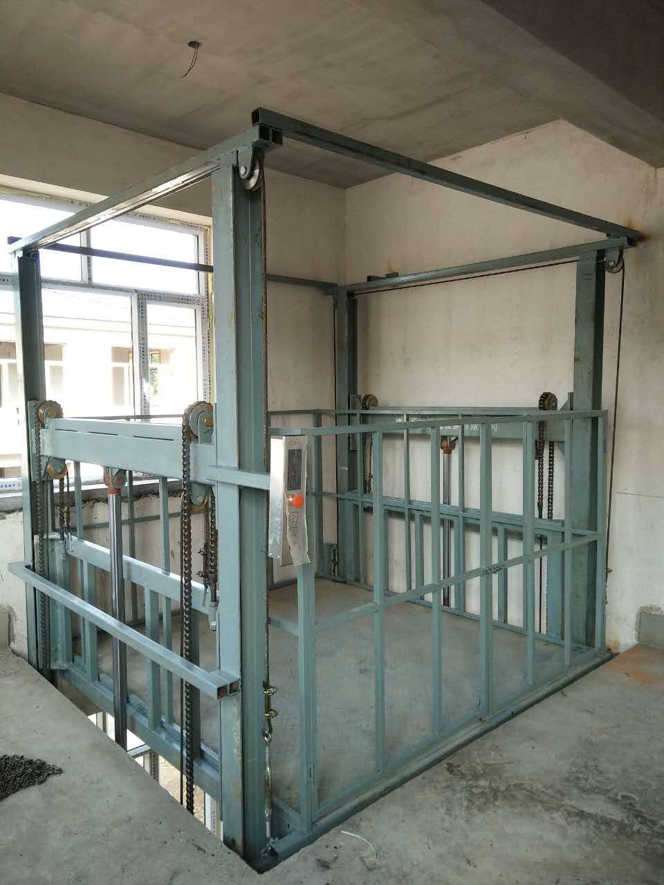 導軌式升降機是一種非剪叉式液壓升降機械設(shè)備。用于二三層工業(yè)廠房,倉庫,酒樓樓層間的貨物傳輸。高度在150-300mm,尤其適合不能開挖地坑的工作場所。并且無須上部吊點,形式多樣化(單柱,雙柱,四柱)。設(shè)備運行平穩(wěn),導軌式升降機的導軌一般為槽鋼、H鋼,方管焊接制成,操作簡單可靠,貨物傳輸經(jīng)濟便捷。