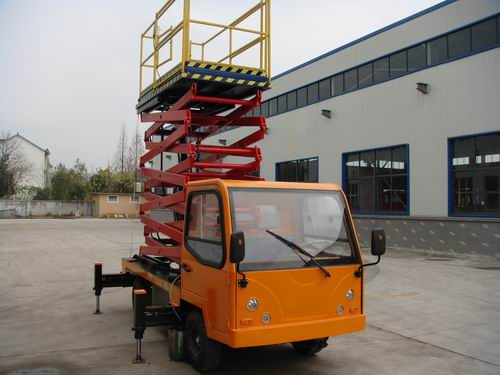 本產品是由高空作業平臺與電瓶車或汽車改裝的高空作業設備。