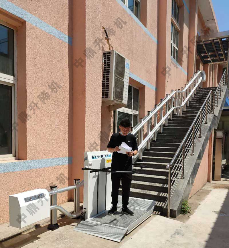 斜掛式升降平臺是一種安裝在樓道系統(tǒng)利用電機(jī)牽引沿著軌道上下移動并運(yùn)載乘客的無障礙安全裝置。它由驅(qū)動系統(tǒng)、導(dǎo)軌、繩輪鏈、移動平臺等組成。