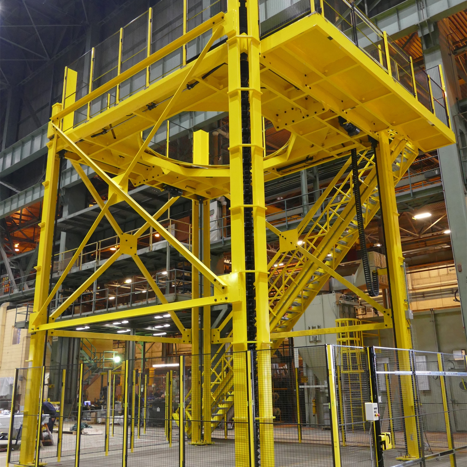 該大型四柱升降作業平臺為核能行業客戶量身打造,專用于核電站反應堆返修過程中技術人員的重管更換培訓與模擬操作。平臺用于測試設施,設計制造符合極其嚴苛的精度要求,并嚴格遵循核能行業質量標準,體現了極高的工程制造水平。