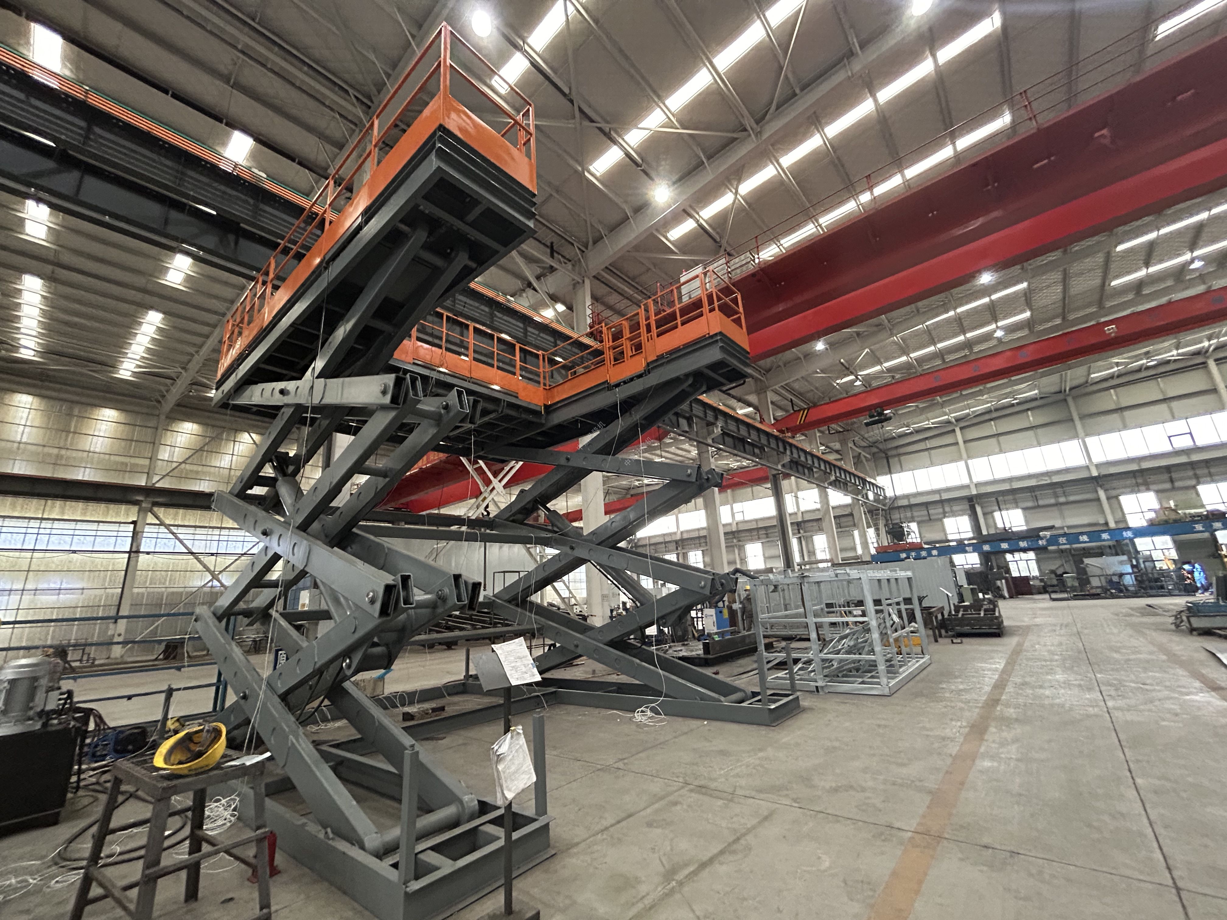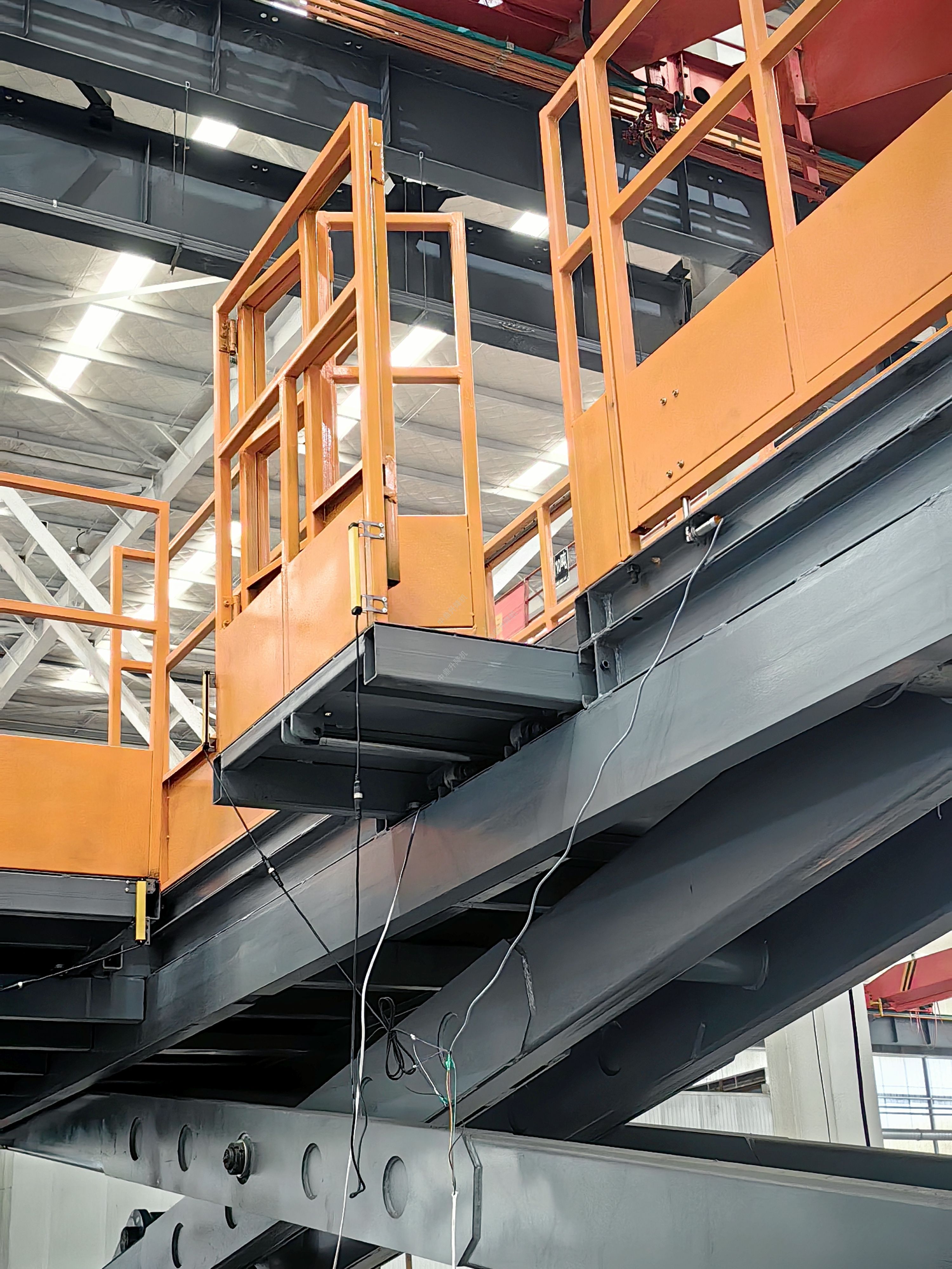 每個(gè)液壓驅(qū)動(dòng)的坑式安裝的剪叉式升降機(jī)的平臺(tái)升降機(jī),在每只腳下設(shè)置了帶有電纜傳感器的平臺(tái)下方的升降機(jī),
