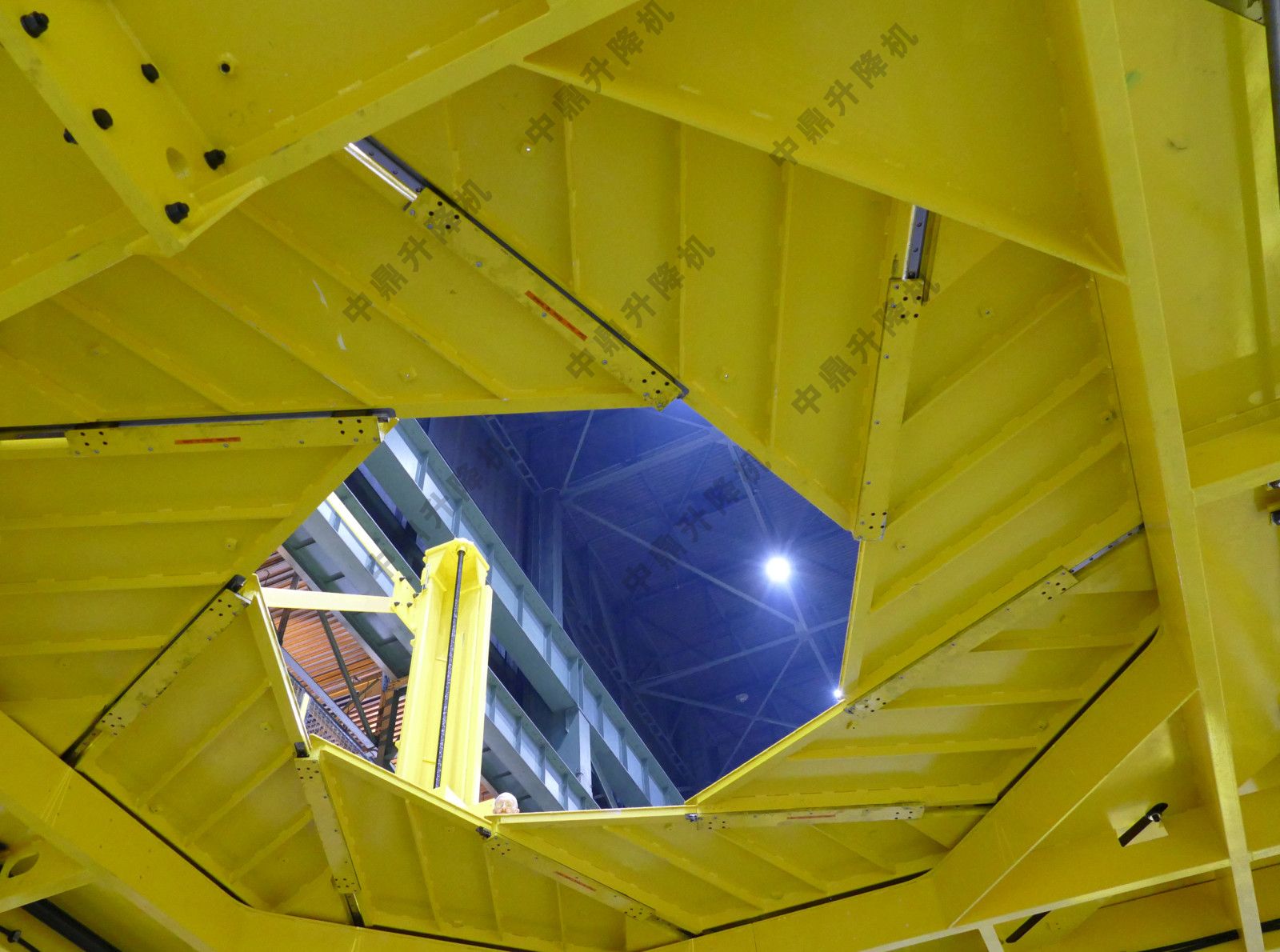 平臺(tái)和樓梯組件的升降是通過(guò)放置在每個(gè)角柱上的四個(gè)滾珠絲杠驅(qū)動(dòng)的,每個(gè)滾珠絲杠由強(qiáng)大的電機(jī)驅(qū)動(dòng),每個(gè)滾珠絲螺釘彼此機(jī)械同步。中央光圈開(kāi)啟驅(qū)動(dòng)是液壓的。